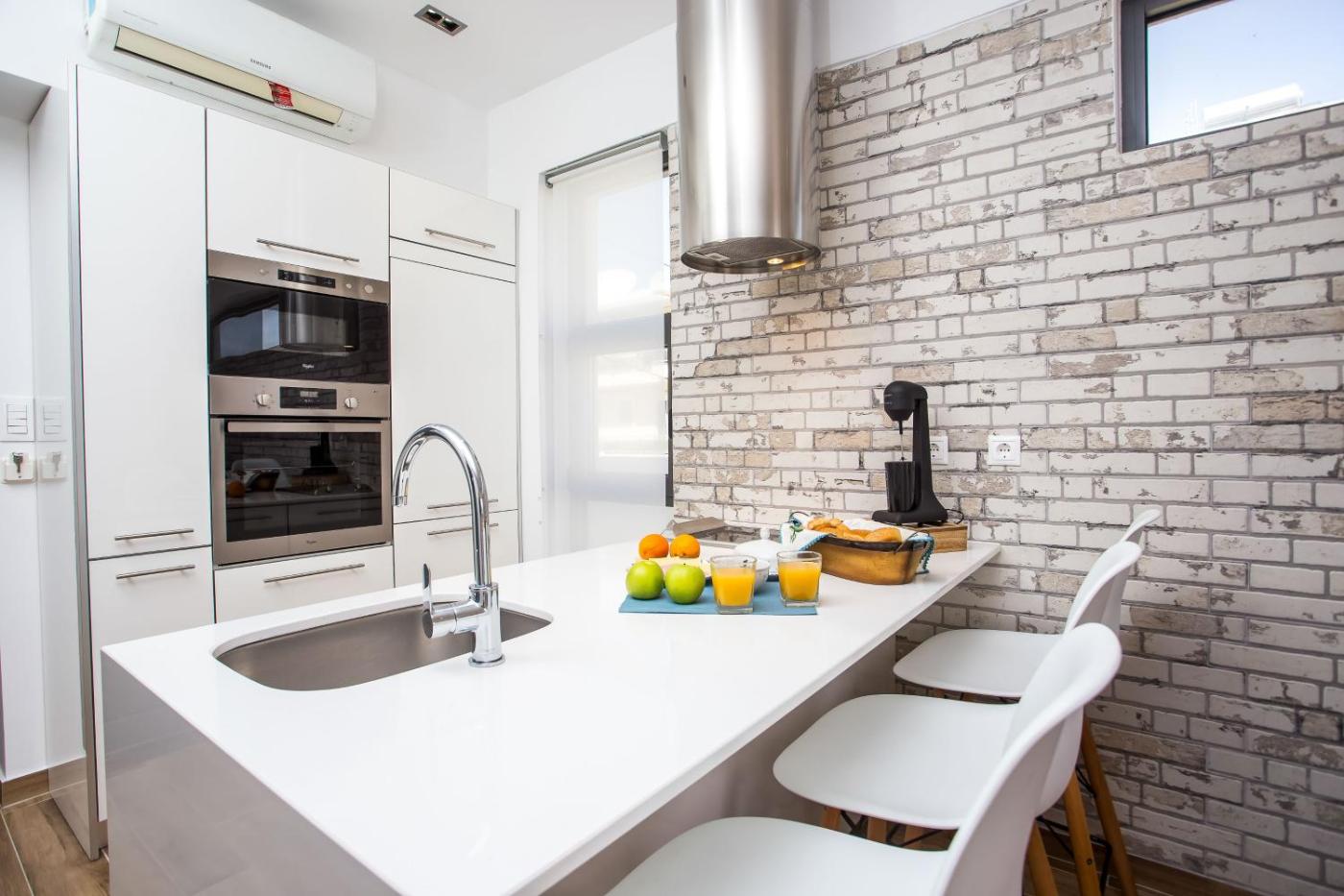 One-Bedroom Apartment. The hot tub and spa bath are the standout features of this apartment. Boasting a private entrance, this air-conditioned apartment features 1 living room, 1 separate bedroom and 1 bathroom with a walk-in shower and a hairdryer. Guests can make meals in the kitchen that features a stovetop, a refrigerator, kitchenware and an oven. Featuring a terrace with city views, this apartment also features a washing machine and a flat-screen TV with satellite channels. The unit has 2 beds.