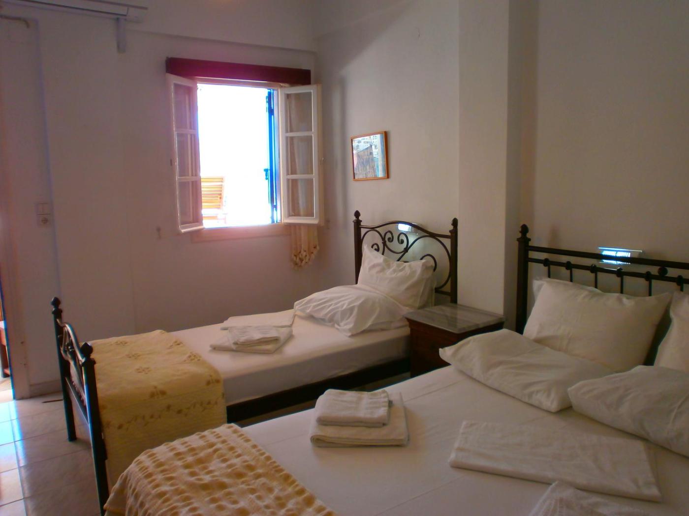 Triple Room with Sea View. Opening out to a shared, furnished patio enjoying views over the Aegean Sea, this room is just 20 metres from the beach. Free Wi-Fi, a TV and a fridge are available. ;