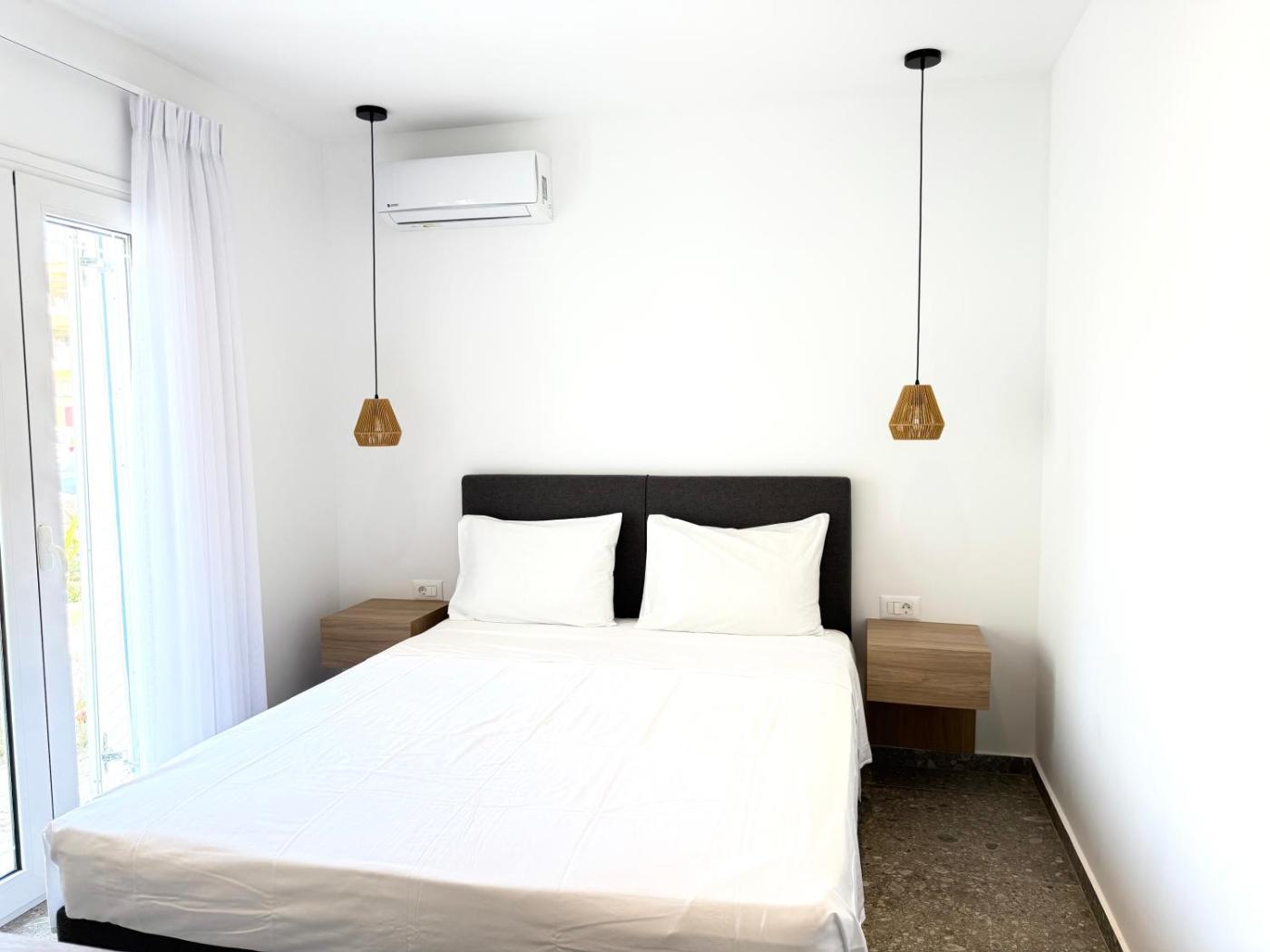 Two-Bedroom Apartment. This air-conditioned apartment includes 1 living room, 2 separate bedrooms and 1 bathroom with a bath or a shower. The apartments kitchen, which features a refrigerator and kitchenware, is available for cooking and storing food. This apartment has a washing machine, a tea and coffee maker, a flat-screen TV and a terrace. The unit has 3 beds.