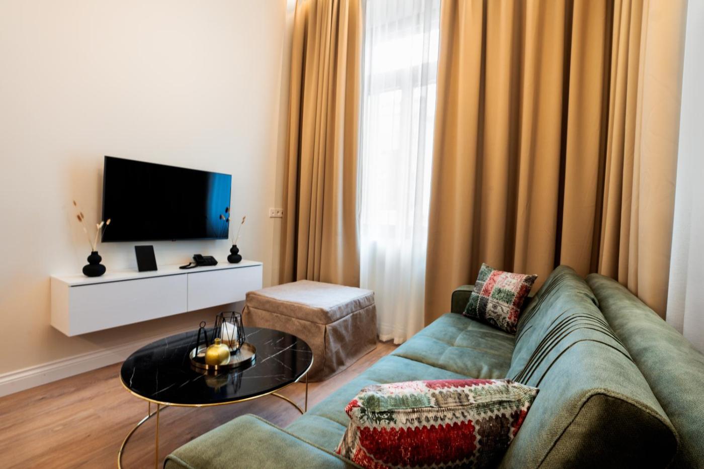 Deluxe Apartment. Featuring a private entrance, this air-conditioned apartment consists of 1 living room, 1 separate bedroom and 1 bathroom with a walk-in shower and a hairdryer. Boasting a balcony, this apartment also provides soundproof walls, a tea and coffee maker and a flat-screen TV with streaming services. The unit offers 3 beds. ;