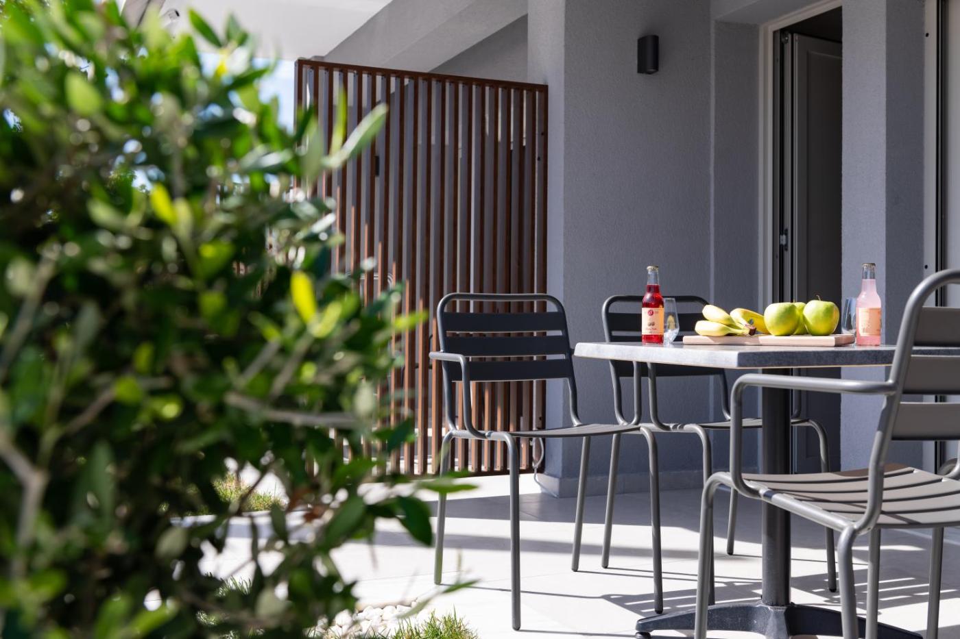 Each unit is equipped with a terrace offering mountain views, a flat-screen TV, a well-fitted kitchenette and a private bathroom with walk-in shower, a hair dryer and free toiletries. A fridge, a stovetop and kitchenware are also provided, as well as a coffee machine and a kettle. Additional in-room amenities include wine or champagne, fruits and chocolates or cookies.