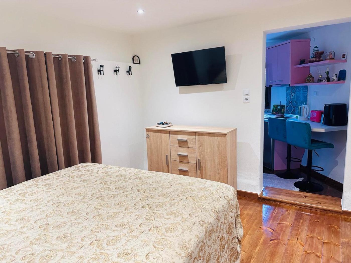 One-Bedroom Apartment with Balcony. Boasting a private entrance, this air-conditioned apartment comes with a kitchen, 1 bedroom and 1 bathroom with a shower and a hairdryer. Guests can make meals in the kitchen that features a stovetop, a refrigerator, kitchenware and an electric kettle. Featuring a balcony with a quiet street view, this apartment also features a wardrobe and a flat-screen TV. The unit has 1 bed.