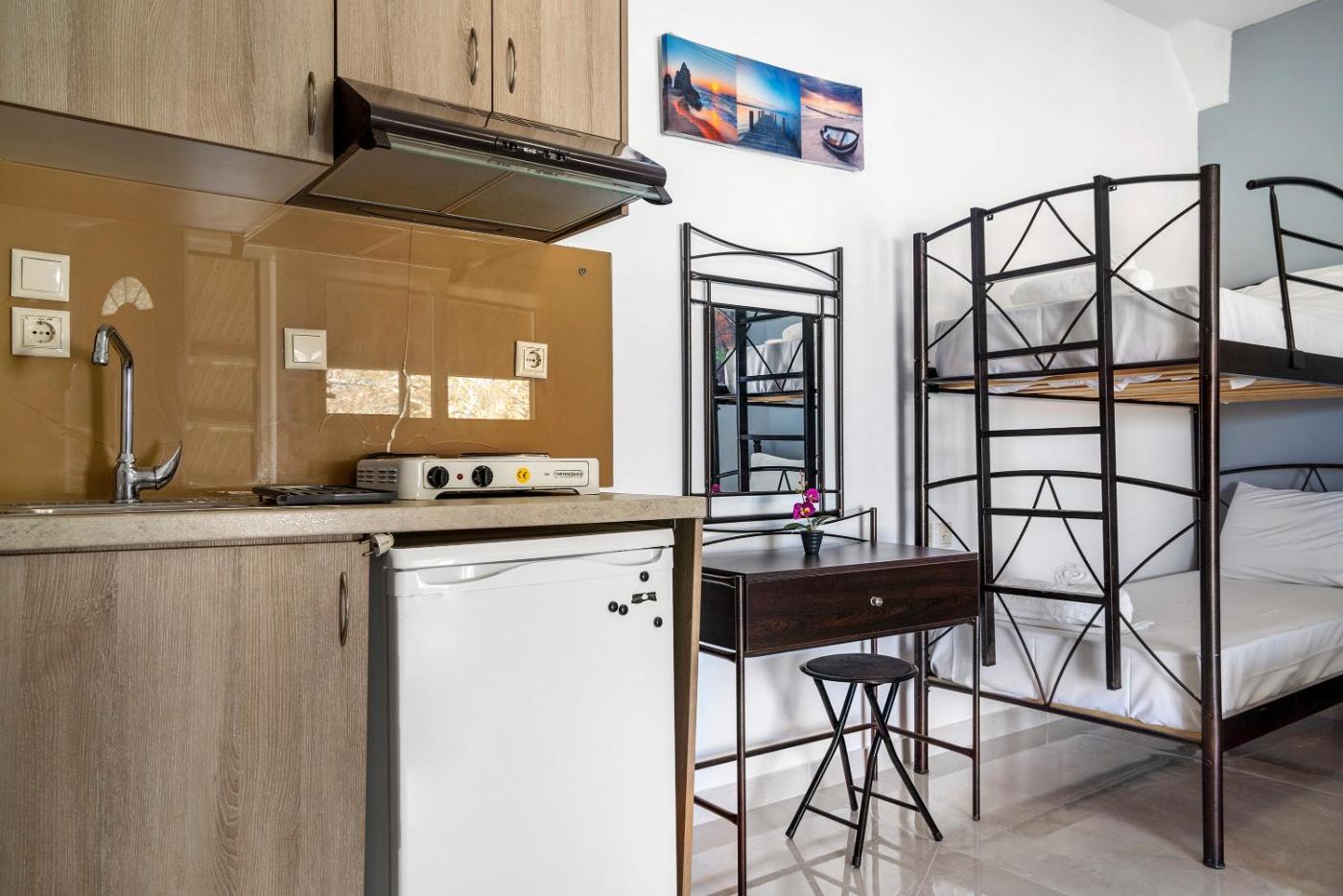 Superior Studio. The studios kitchen, which has kitchenware, is available for cooking and storing food. The studio features air conditioning, an electric kettle, a balcony with garden views as well as a private bathroom boasting a shower. The unit has 2 beds.