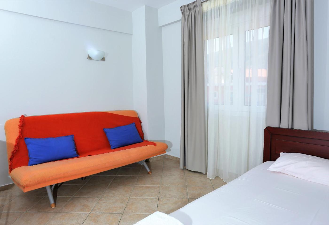 One-Bedroom Apartment with Balcony and Sea View. Featuring a private entrance, this air-conditioned apartment is comprised of 1 living room, 1 separate bedroom and 1 bathroom with a shower and a hairdryer. The fully equipped kitchenette features a stovetop, a refrigerator, kitchenware and an oven. Boasting a balcony with sea views, this apartment also offers a coffee machine and a flat-screen TV with cable channels. The unit offers 3 beds. ;