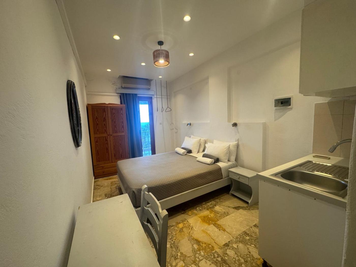 Deluxe Double Room. The double rooms kitchenette is available for cooking and storing food. The spacious double room features air conditioning, an electric kettle, a dressing room, as well as a balcony. The unit has 1 bed. ;