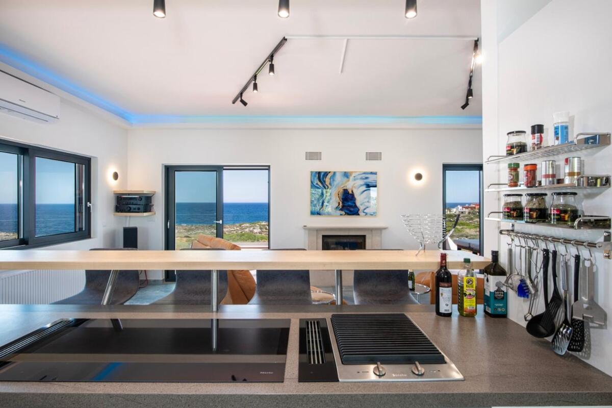Located in Stavros, Seafront Villa w Heated Pool-Jacuzzi-Gym-Spa-Games offers a balcony with sea and mountain views, as well as a year-round outdoor pool, sauna and hot tub. This property offers access to a terrace, a pool table, free private parking and free WiFi. The property is non-smoking and is situated 1.1 km from Sunset Beach.