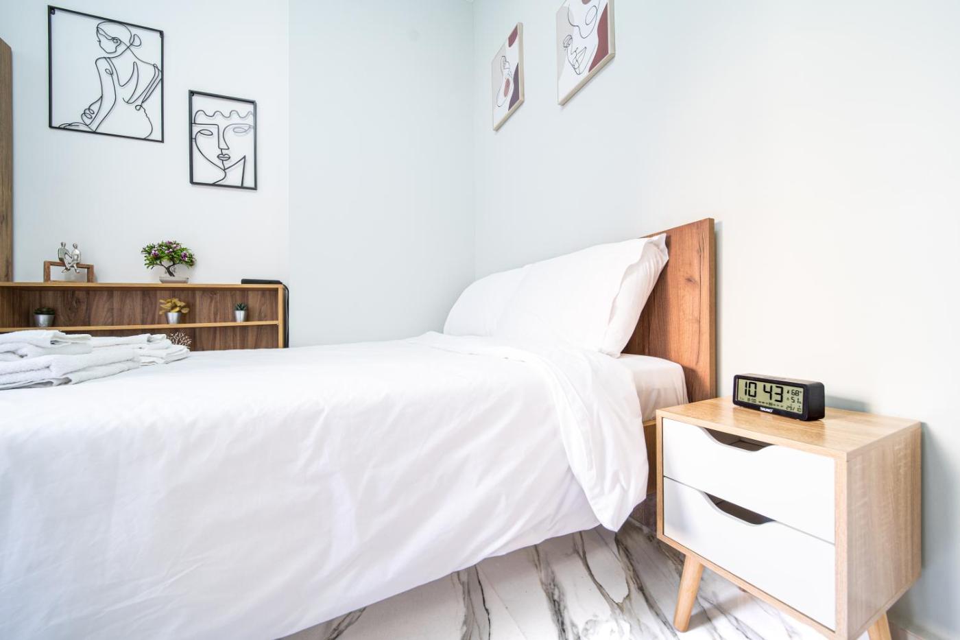One-Bedroom Apartment. The kitchenette is fitted with a stovetop, a refrigerator and kitchenware. This apartment is air-conditioned and has a seating area with a flat-screen TV, a washing machine, a private entrance, soundproof walls, as well as a coffee machine. The unit has 1 bed.